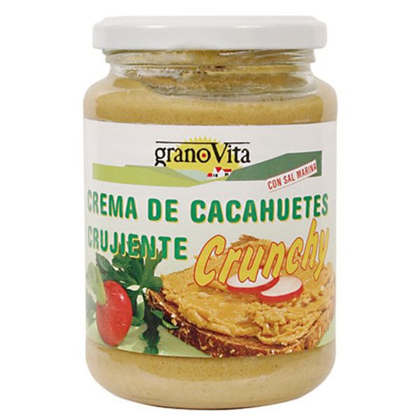 La crema de cacahuete crujiente de Granovita, es un producto de agradable sabor y alto valor nutritivo (sobre todo en ácidos grasos y proteínas), sin aflavotoxinas. Es una crema de cacahuete de textura crujiente y gran sabor. La crema incluye trocitos de cacahuete, cuidadosamente seleccionados y ligeramente tostados para que se vuelvan crujientes en la boca.