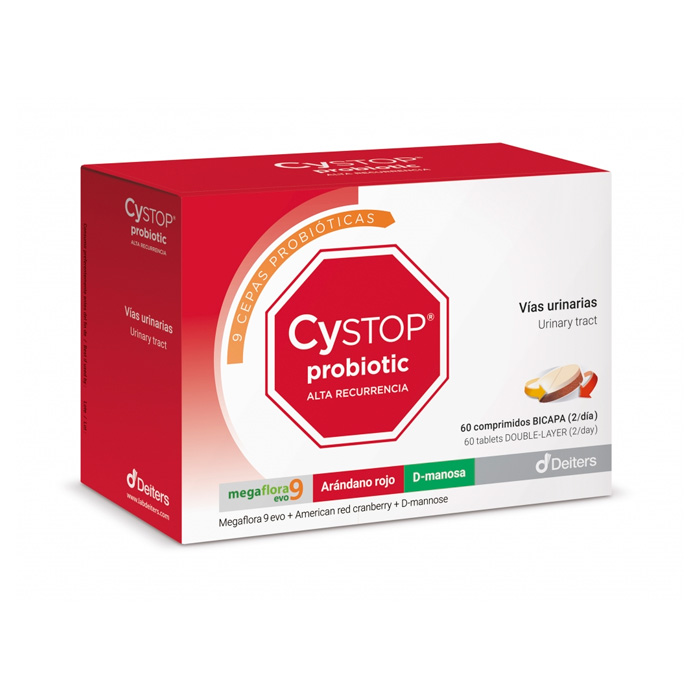 Agente de carga: Celulosa microcristalina (E460), D-Manosa, megaflora 9 evo (B.lactis W51 y W52, E. faecium W54, L.acidophilus W22, L.paracasei W20, L.plantarum W1 y w2, L.salivarus W24, L.lactis W19) Estabilizante: Hidroxipropilmetilcelulosa (E464), Extracto seco de fruto de arándano rojo americano (Vaccinum macrocarpon Aiton) (estandarizado a al 50% de PACs), Agente de carga: fosfatos cálcicos (E341), antiaglomerante: Dióxido de silicio(E551), Estabilizante: Carboximetilcelulosa (E464), Estabilizantes: Celulosa microcristalina (E460) y ácidos grasos (E570).
