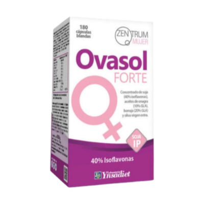 Aceite de Onagra* (Oenothera biennis L., semillas), Componentes de la cubierta de la cápsula [Gelatina, espesante: glicerina, agua y colorantes (óxido de hierro amarillo, óxido de hierro rojo)]. Aceite de Borraja* (Borago officinalis L., semillas), Aceite de Oliva* virgen extra (Olea europea L., fruto), concentrado de soja (isoflavonas 40%) (Glycine max, aceite), Emulgente (Cera amarilla de abejas), Vitamina E ( D-Alfa-Tocoferol).
