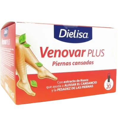 Venovar plus de Dielisa, es un complemento alimenticio líquido a base de arándano, rusco, saúco, castaño de indias, hamamelis, bioflavonoides de cítricos y vitaminas para activar la circulación y ayudar a reducir la pesadez de piernas cansadas, varices ...